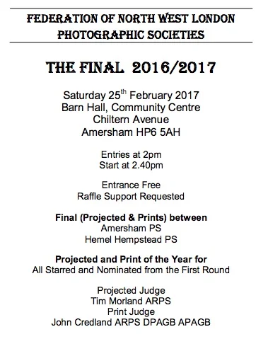 Details of the Final are given on the posters below. EHHPS have two starred projected images from Shaun and Karen and one starred print from Ania