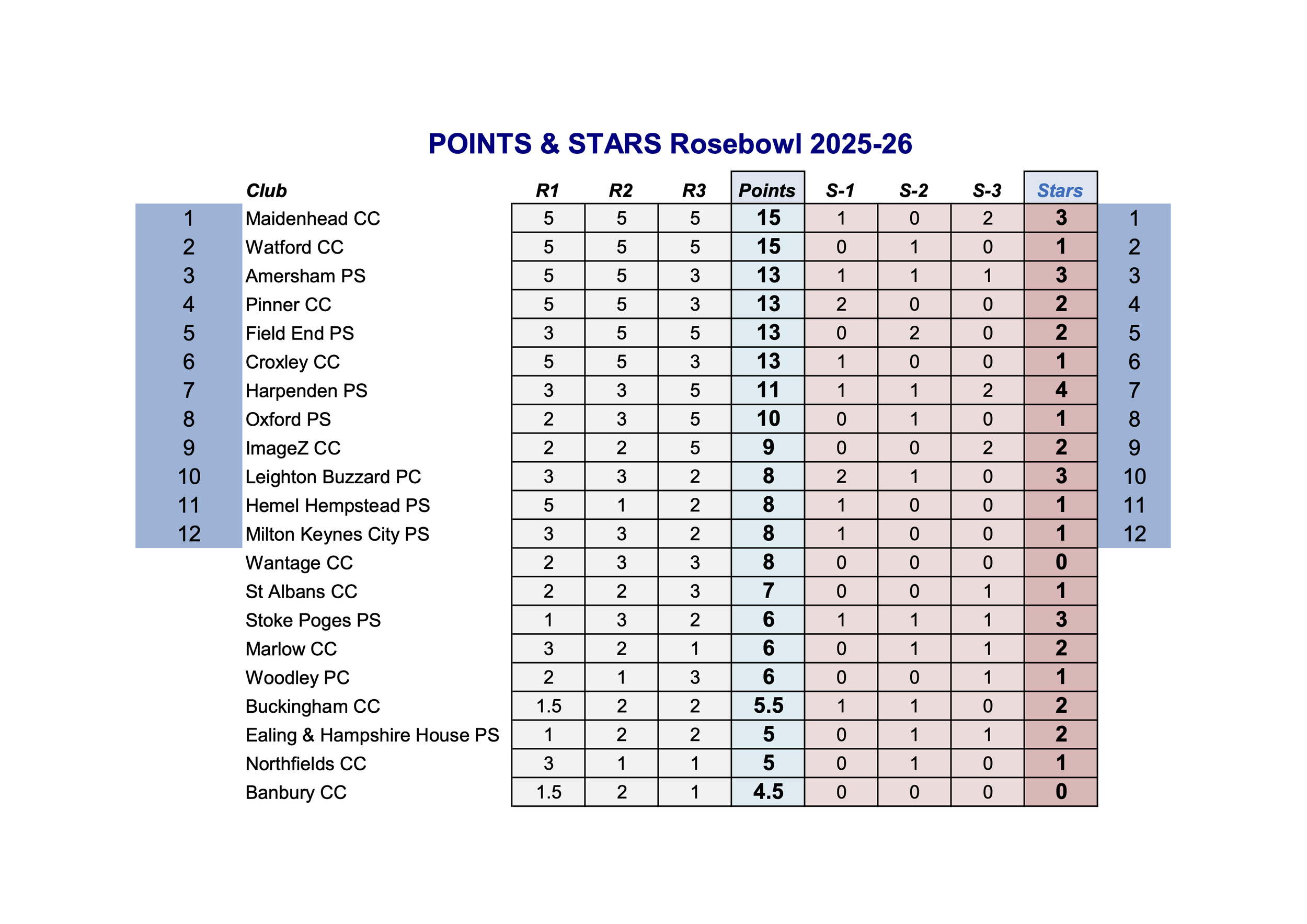 Chris awarded four 20's on the night 2 to Oxford, and 1 each to EHHPS and St Albans.